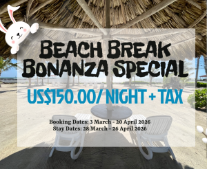 Enjoy our Beach Break Bonanza Special for just US$150.00 per night plus Tax with a minimum 2-night stay. Wake up to ocean breezes, soak up the sun, sip something tropical, and make every sunrise count.